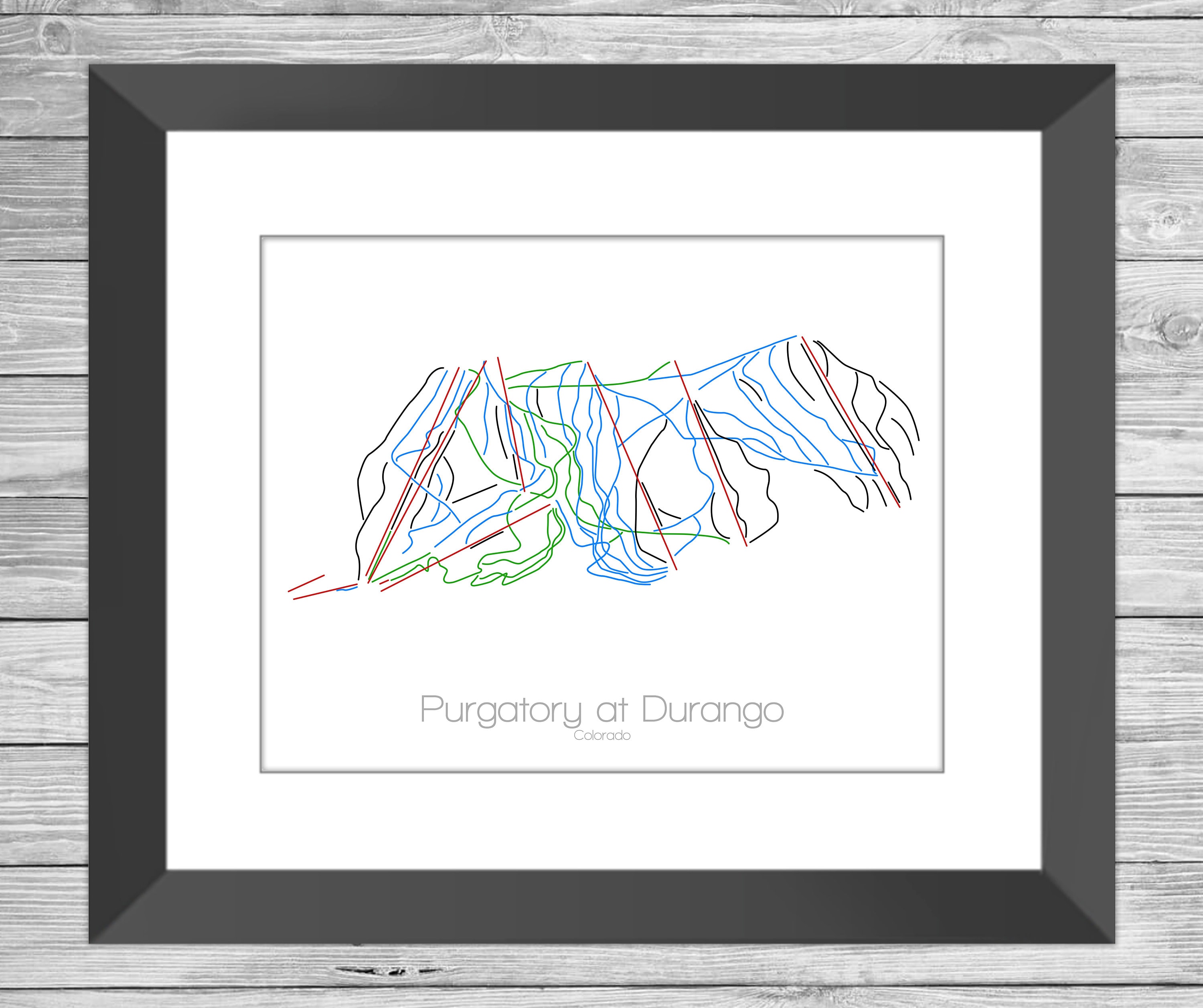 Purgatory At Durango Map Colorado Co Ski Snowboard Trail Art Etsy